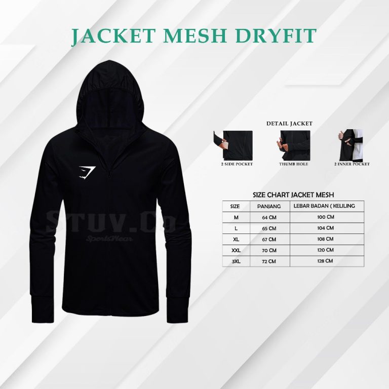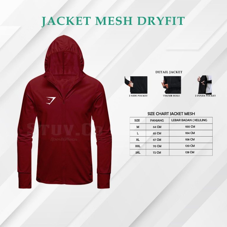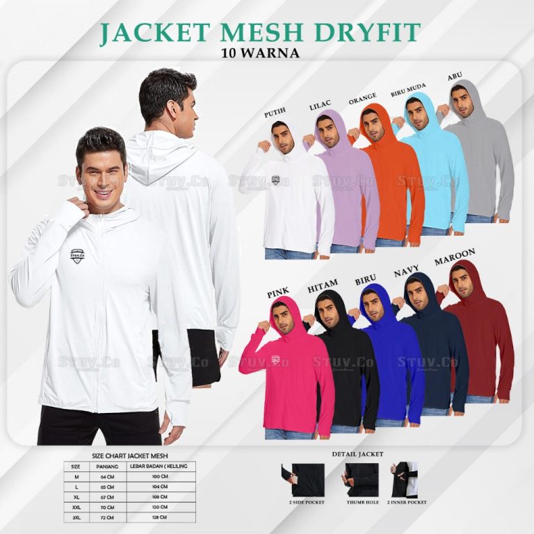 Didesain khusus dengan bahan Polyester Dry Fit berkualitas tinggi, jaket ini mampu menahan panas sekaligus menjaga kenyamanan Anda saat beraktivitas